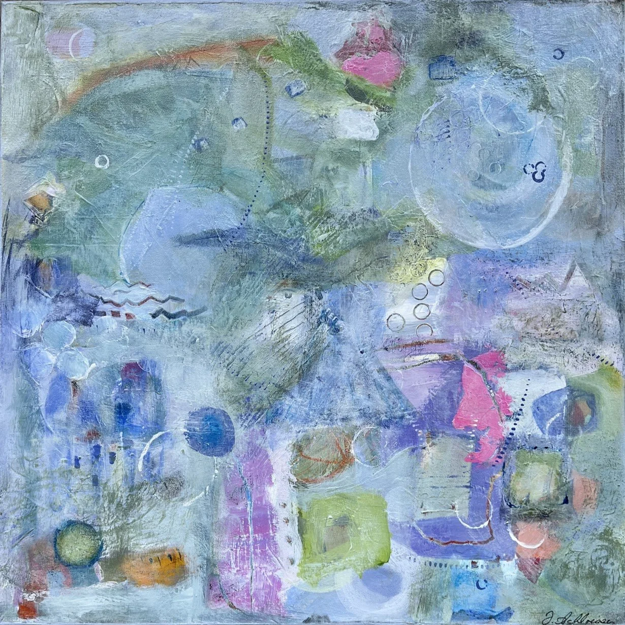 Soft Reply is unframed, ready to hang (hardware included). Edges 1.5" painted pastel blue violet.